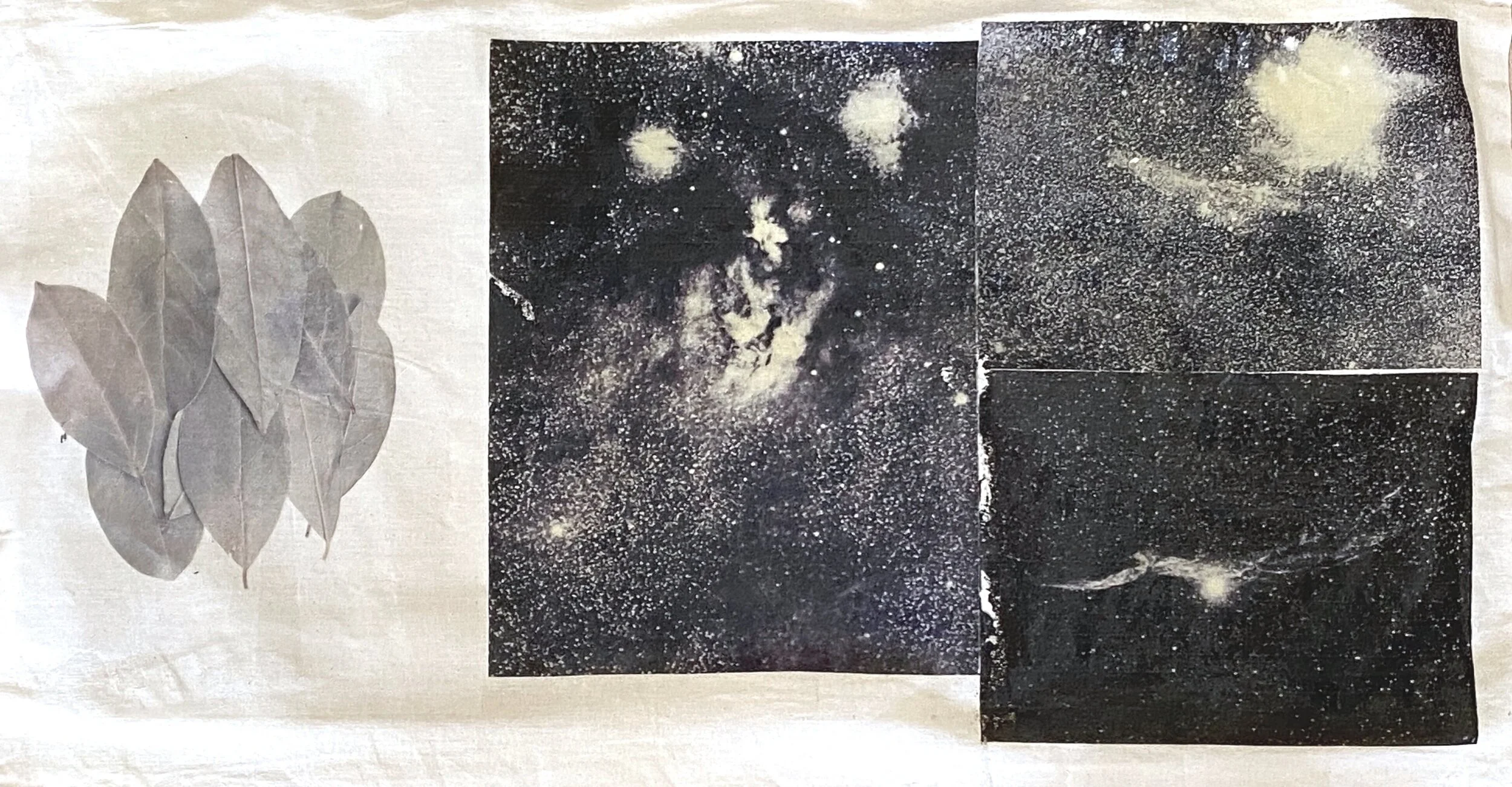 Land/waterscapes and Blackness (Wetlands/Swamps and former enslaved peoples; Maryland Marshes, the Barred Owl, and Harriet Tubman; Huntsville State Park and Civilian Conservation Corps, Oleanders and Clarence Pickens; The North Pole and Matthew Henson), photo transfer and dye on fabric, mixed media, various dimensions, 2024